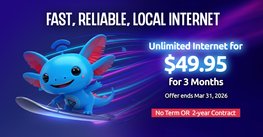 If you sign up before March 31, 2026, at midnight. You will receive Unlimited internet for only $49.95 for 3 months. And you still have the option of a no-term or 2-year contract with free installation.
