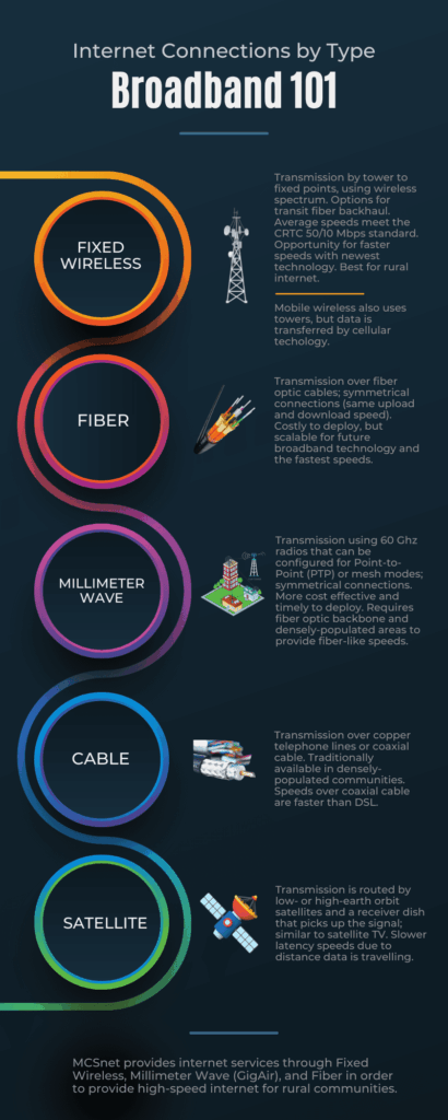 There are many ways to get the internet to your home or business, and MCSnet uses a variety of these technologies to continuously enhance high-speed internet for rural customers. If you are looking for an internet solution for your home or business, contact us to find out what is available to you.