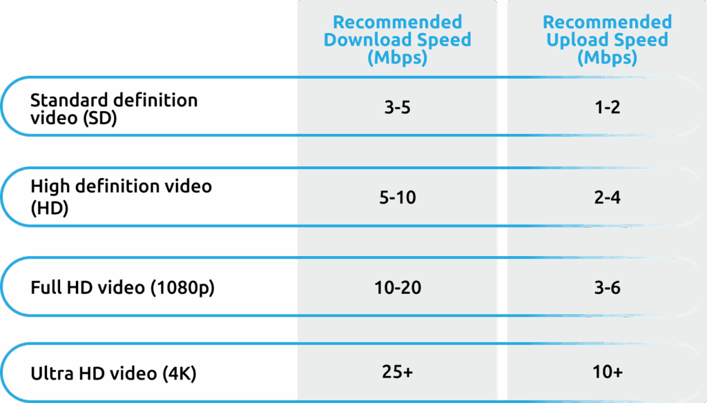 | Video Conferencing Scenario | Recommended Download Speed (Mbps) | Recommended Upload Speed (Mbps) |