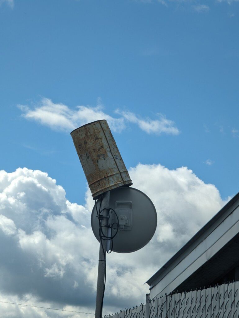 Our customers have indicated to us that reliability of service is the number one priority. Enter our Chief Innovation Officer Mark Beland and his team to find a way to make the GigAir network more reliable. To this end they had an innovative idea that involved using a rusty bucket.
